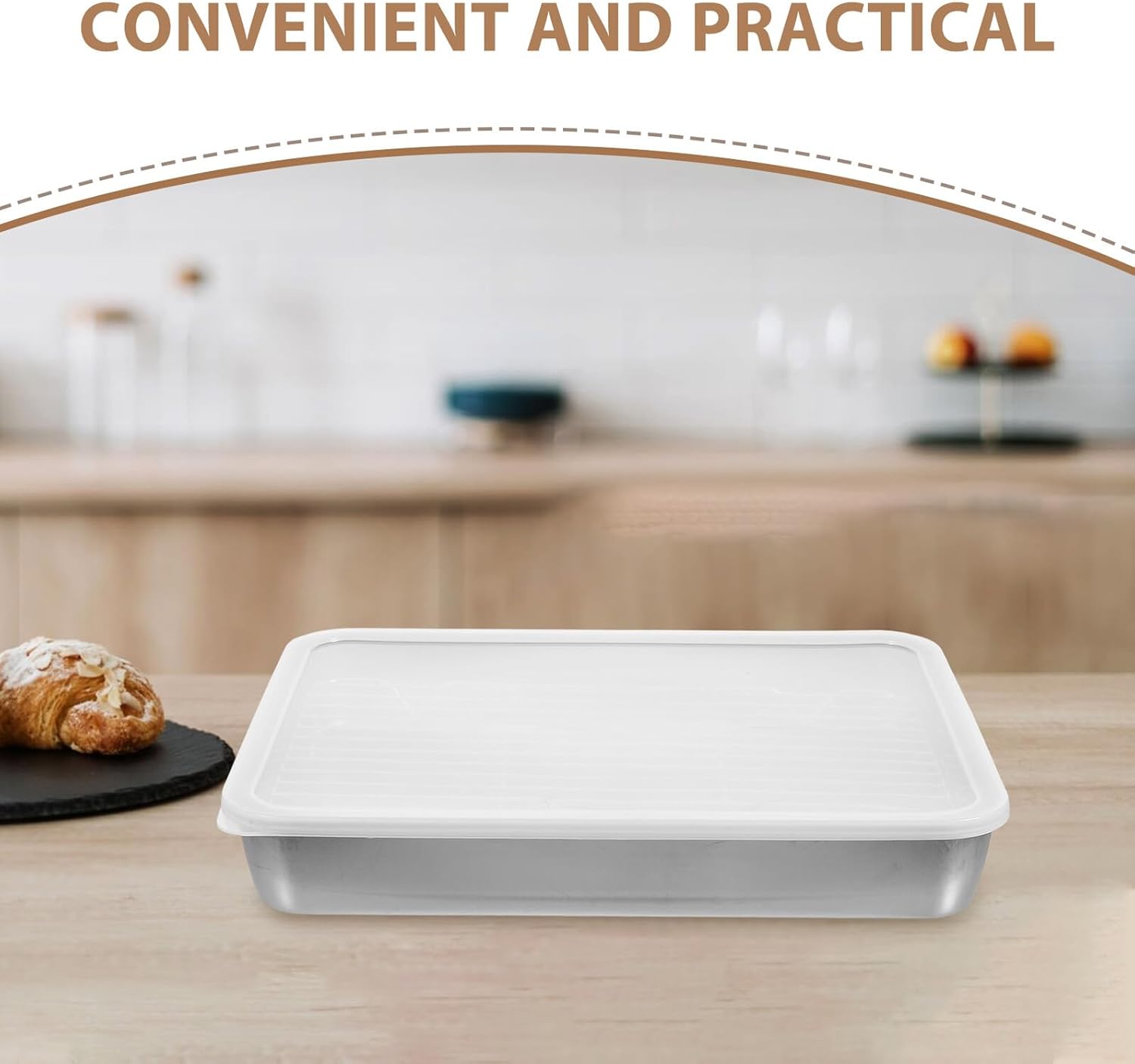 Package List 1 x baking pan 1 Features -Versatile kitchen : this bakery baking pan is designed to meet all your cooking and baking requirements, streamlining your kitchen tools roasting rack -Versatile applications: ideal for roasting, baking, and cooking a variety of dishes, this baking pan is a versatile addition to any kitchen meatloaf pan -Product Info:Baking tray set -Optimal cooking conditions: the rack design allows for precise temperature control, keeping your food moist and enhancing its flavor camping bbq baking pan -Size: 32.00X25.20X5.00cm/12.58X9.90X1.97in -Sturdy stainless steel: crafted from sturdy stainless steel, this baking pan is resistant to damage, ensuring a and safe cooking experience turkey roasting pan -Simple cleaning: the surface allows easy cleaning, allowing you to spend more time enjoying your meals and less time on cleanup home stainless steel plate -Color:Silver -Material:Stainless steel, siliconeGoods Descriptionbaking pans for oven The rack allows even cooking by allowing air to circulate around the food, while the lid helps to lock in flavors and moisture, making every meal a success.roasting rack Use it in the oven to roast a turkey, bake a casserole, or even as a food holder for serving.Stainless steel rectangular cooking pan Our stainless steel roasting pan with rack set is designed for versatility and convenience