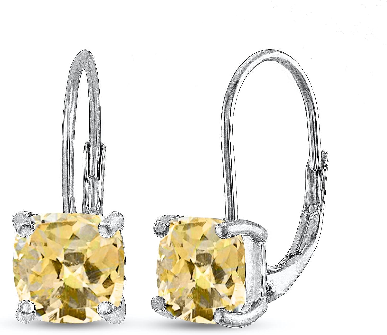 Sterling Silver Genuine, Created or Simulated Gemstone 7x7mm Cushion-Cut Leverback Drop Earrings for Women, Birthstone color options.