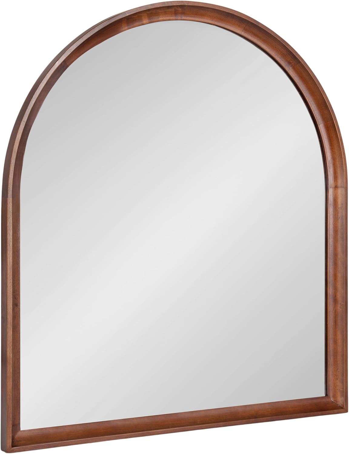 This mirror is perfect for unleashing your inner decorator and transforming your space with a modern transitional look. The Hatherleigh was designed with robust natural wood, providing high-quality durability, a lovely woodgrain, and a charming, rustic brown finish. The wide arch shape is perfect for introducing soft geometry to your space while maintaining a squared-off base for structure and uniformity. Its overall dimensions are 32 inches wide by 1.5 inches deep by 36 inches tall, creating a commanding statement piece that functions well in various spaces. Use the Hatherleigh mirror to bring vibrancy to your space, using the wide surface area to increase the spread of light and make your room appear brighter. It looks great all throughout your home or office, pairing well with your mantel, console table, sofa, bed, and much more. If you're looking to start renovating your bathroom with a relaxing vibe, the Hatherleigh works well as a tall bathroom mirror in a single or double vanity. Hang this mirror in a matter of minutes with the metal D-ring hangers that are attached to the sturdy back.