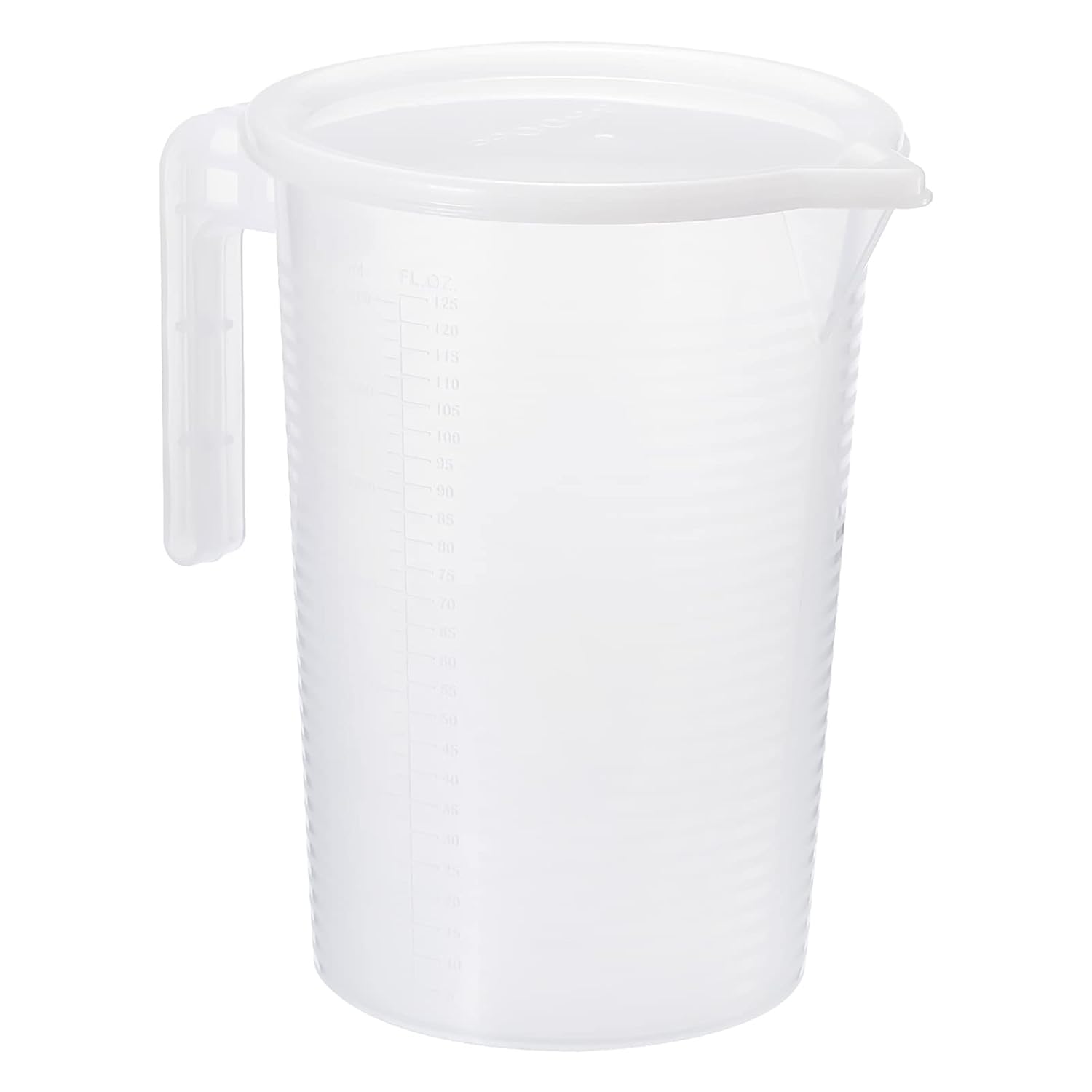 The Graduated Beaker is designed for measuring, transferring, and storing the liquid in the lab or home, it features double-sided graduations with different measurements, and with a comfortable handle and spout, is a great tool even in the laboratory.SpecificationMaterial: PP(Polypropylene)Capacity: 5000mlTotal Size: 15.5 x 22 x 26.5 cm / 6.1 x 8.66 x 10.43 inch (Bottom.D*Top.D*H)Package List: 1 x Graduated BeakerAdvantageMade of PP plastic, with good resistance to high and low temperatures, strong toughness, not easy to break when falling, can serve a long time in daily use.Tapered spout for easy pouring and transferring of liquids, with a comfortable handle for easy and convenient lifting.Comes with a soft lid, has good sealing performance, is not easy to fall, easy to install and remove.InstructionThere are accurate graduations on each side of the beaker in different measurements, clear and not easy to fade, you can measure the liquid you want more conveniently.NoticeThe Beaker has certain heat resistance, but it can not be a direct heating container.