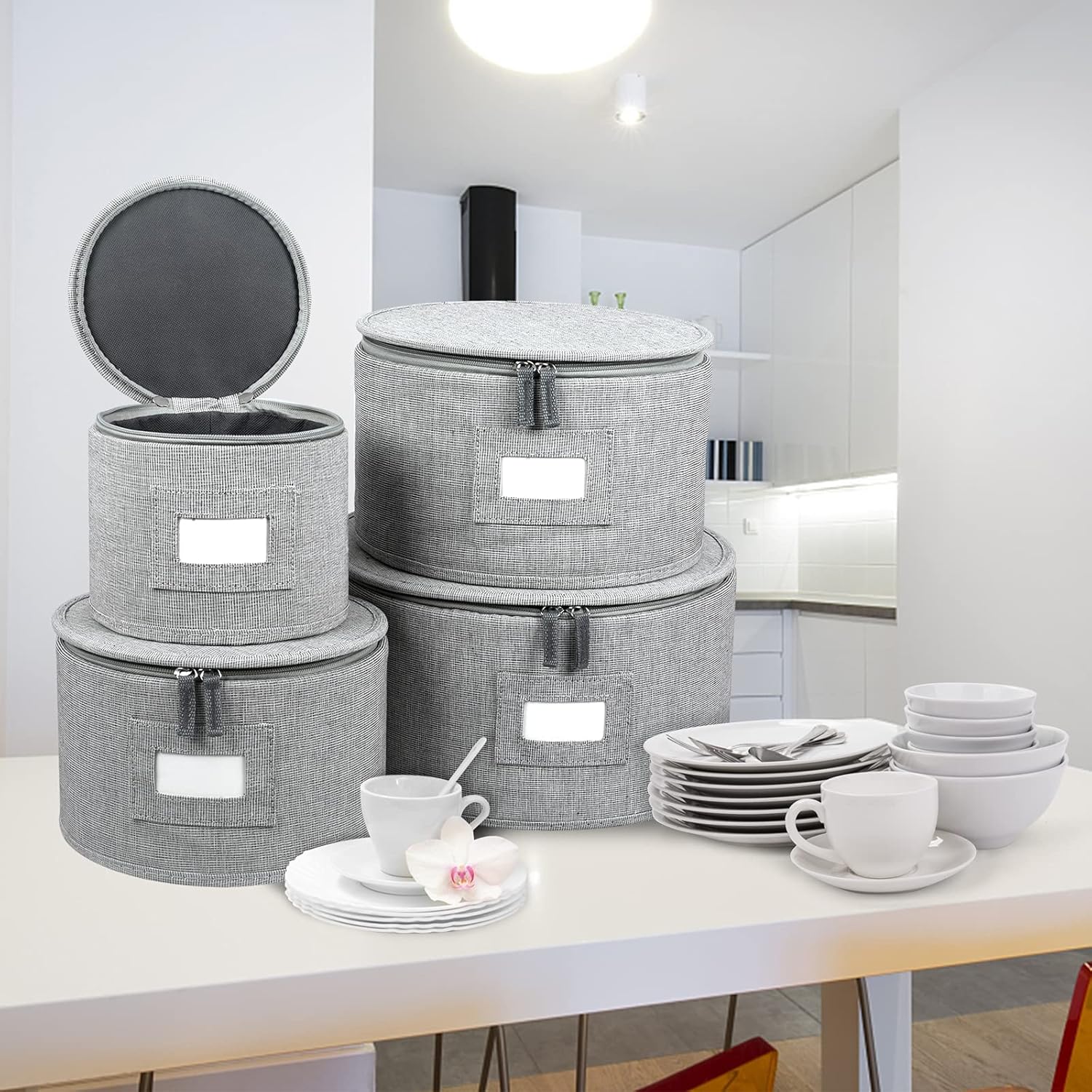4 tray box storage bins and mug storage bins.Mugs and plates are not included